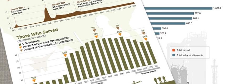 Infographics are a combination of graphic design, content and data. They are a visually compelling communication medium that allow federal agencies like the U.S. Census Bureau to present complex information that tells a story or transforms otherwise dry information into a captivating graphic.